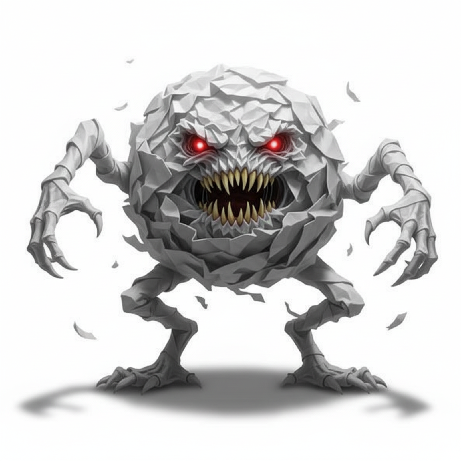 >Deep in the basement of a forgotten office building, a paper shredder hummed its final tune. But something went wrong. The machine jammed, sparked, and from the chaos emerged a creature made entirely of shredded paper and pure spite.